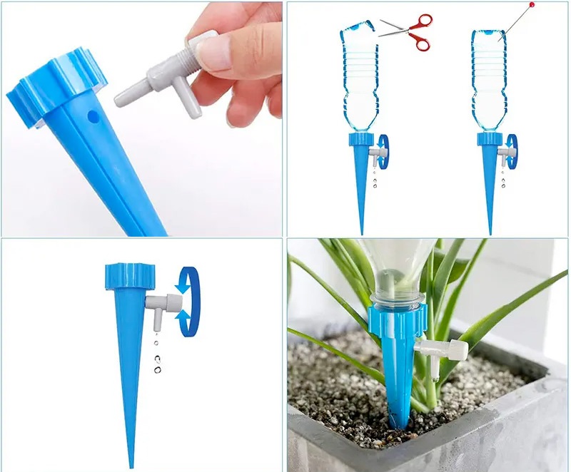 Egyszerű és praktikus módszer a háztartásban vagy üvegházban tartott növények öntözésére. Folyamatosan működik, nem igényel áramot és felügyeletet. Az öntözés sebessége szükség szerint szabályozható. Folyékony műtrágya adagolására is alkalmas. A vízkészlet 1-15 napig tart (a víz csepegésének intenzitásától függően)