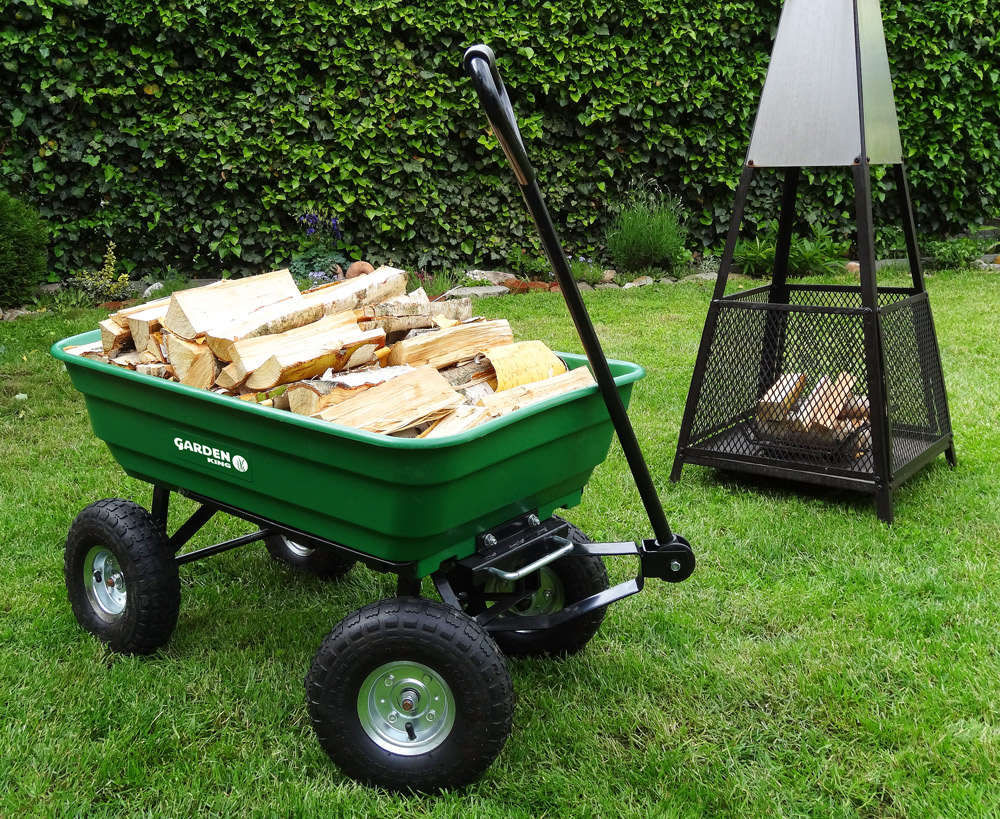 A kerti kocsi praktikus segítő a kertben. A kerti kocsi alkalmas föld, fű, kerti hulladék, fa stb. szállítására.