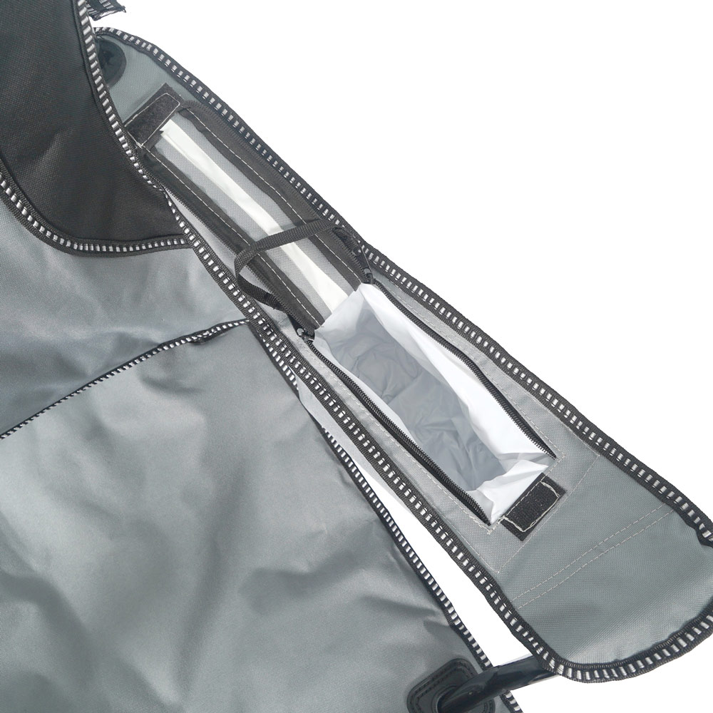 - anyag – ellenálló, kettős rétegű, strapabíró 600D poliészter szövet PE bevonattal, pamut béléssel