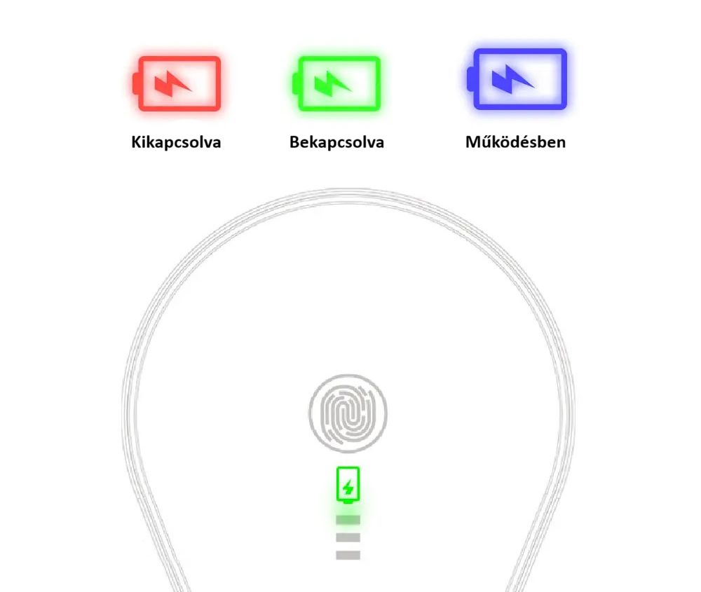- Töltéshez szükséges tápellátás: USB-C 5 V/2 A max. (kábel a csomagban található)