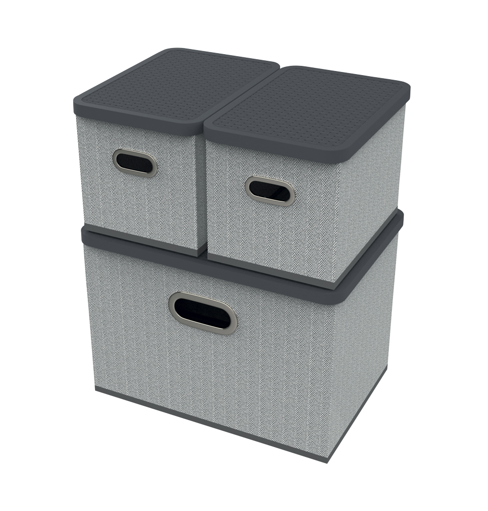 HomeLife Tároló doboz fedéllel, 3 darabos készlet - szürke