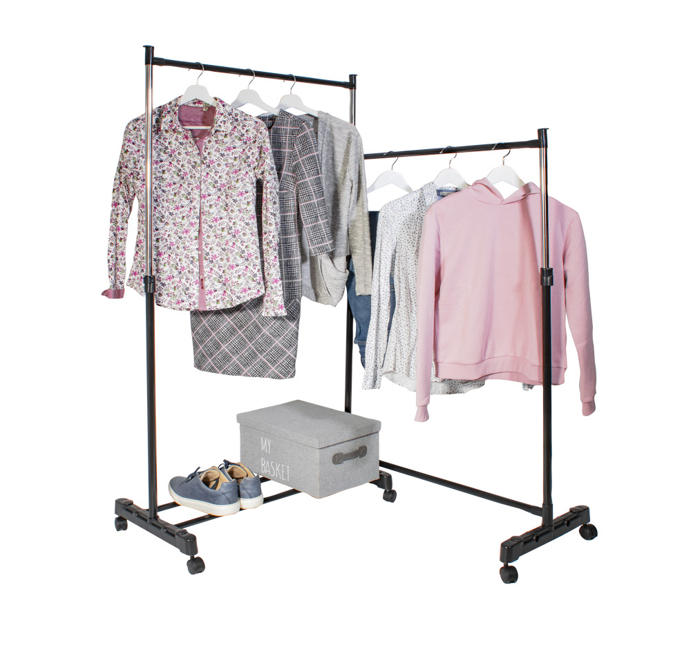 A gurulós ruhaállvány praktikus segédeszköz az otthonában, irodában, vagy bárhol, ahol ruhák, cipők tárolására van szükség.