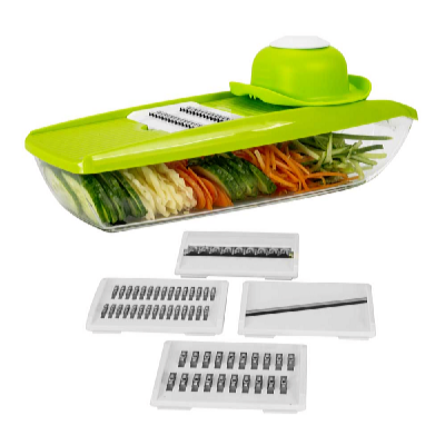 Multifunkcionális aprító a zöldségek és gyümölcsök gyors és praktikus felvágásához, 5 különböző tartozékkal.