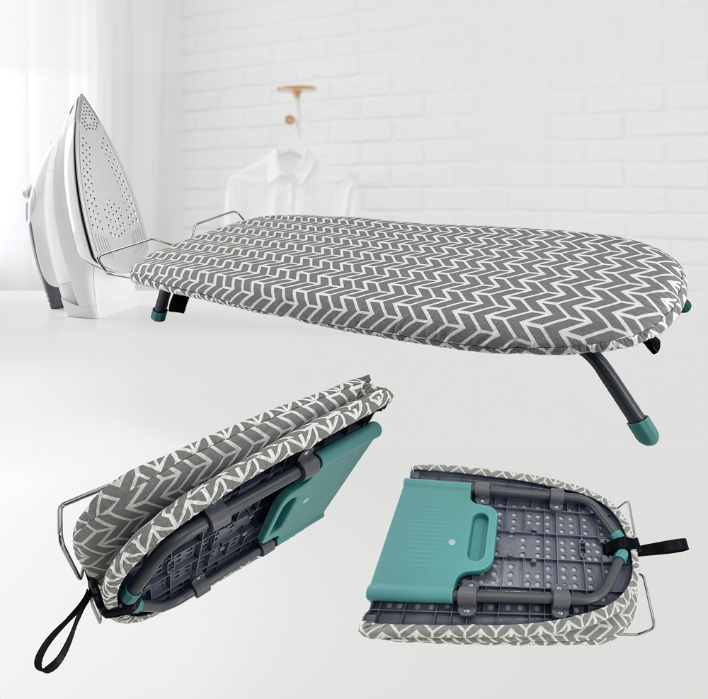 Ez a vasalódeszka ideális segédeszköz, ha otthon nincs sok hely, vagy csak egy-két darabot szeretne kivasalni. Összecsukható és szekrényben, fiókban vagy felakasztva tárolható, így helyet takaríthat meg. Vasaláshoz egyszerűen csak tegye az asztalra.