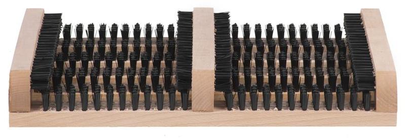 A lábtörlő kefékből és minőségi fából készült oldalsó sínekből áll. A kefék tökéletesen letisztítják a sarat, homokot vagy havat nemcsak a cipő aljáról, hanem az oldaláról is.